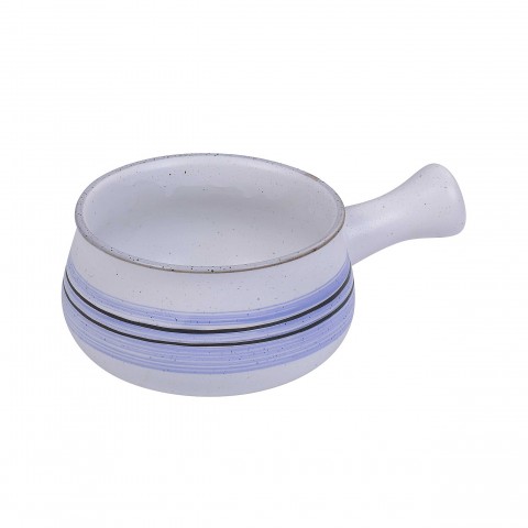 Ocean Skillet Bowl, 22 oz., 4-3/4" dia. x 3"H, round, with handle, glazed, dishwasher, oven and microwave safe, porcelain, white with blue design (sold by case)