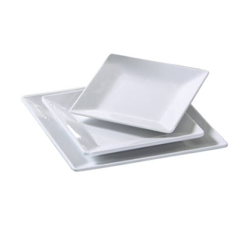 Osaka Plate, 8-1/4"L x 8-1/4"W, square, dishwasher safe, melamine, white (sold by case)