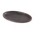 Yanco Peacock Plate, 14"W x 9"D x 1-1/2"H, oval, rolled edge, dishwasher, oven and microwave safe, porcelain, grey (sold by case)