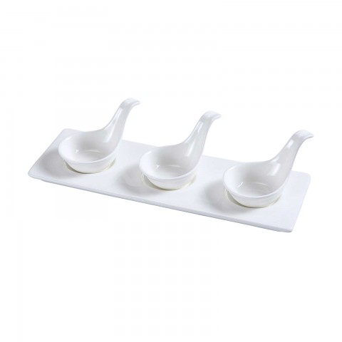 Piscataway Tasting Spoon Set, (3) 2", 2 oz. spoons, (1) 10-1/2" X 3-1/2" tray, porcelain, white (sold by case)