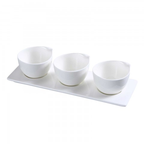 Piscataway Tasting Cup Set, (3) 3", 4 oz. cups, (1) 10-1/2" X 3-1/2" tray, porcelain, white (sold by case)