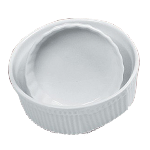 Accessories Soufflé Bowl, 64 oz., 8" dia. x 2-3/4"H, round, fluted, dishwasher, oven and microwave safe, porcelain, white (sold by case)