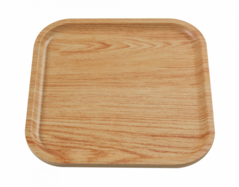 Plate, 8.125"W x 0.75"D x 8.125"H, square, melamine, golden oak color, Wooden Tray II (per case= 3 dozen) (sold by case)