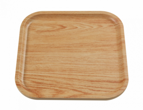 Plate, 9.75"W x 0.75"D x 9.75"H, square, melamine, golden oak color, Wooden Tray II (per case= 2 dozen) (sold by case)