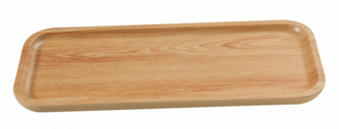 Plate, 14"W x 0.75"D x 4.75"H, rectangular, melamine, golden oak color, Wooden Tray II (per case= 1 dozen) (sold by case)