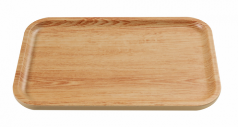 Plate, 14.125"W x 0.75"D x 9.25"H, rectangular, melamine, golden oak color, Wooden Tray II (per case= 1 dozen) (sold by case)
