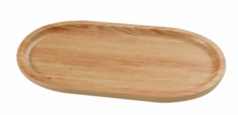 Plate, 12.5"W x 0.75"D x 6.25"H, oval, melamine, golden oak color, Wooden Tray II(per case= 3 dozen) (sold by case)
