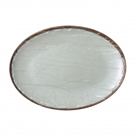 Yoto Plate, 13"L x 9-1/2"W x 1-1/4"H, oval, dishwasher safe, melamine, matte green (sold by case)