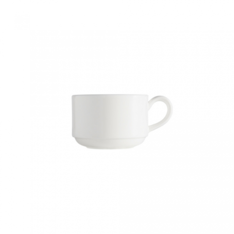 Andromeda Contemporary handle Stack Coffee/Tea Cup, 6 oz., (.18L), dishwasher safe, microwave safe, oven safe up to 400°F, bone China, white, (0.37 each weight) (Per case= 48 each)