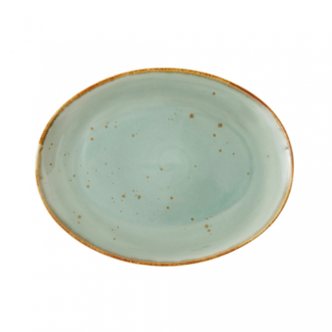 Erthe Celadon Platter, 13x10" (33x25cm), flat oval, dishwasher safe, microwave safe, oven safe up to 400°F, vitrified China, (2.41 each weight) (Per case= 6 each)